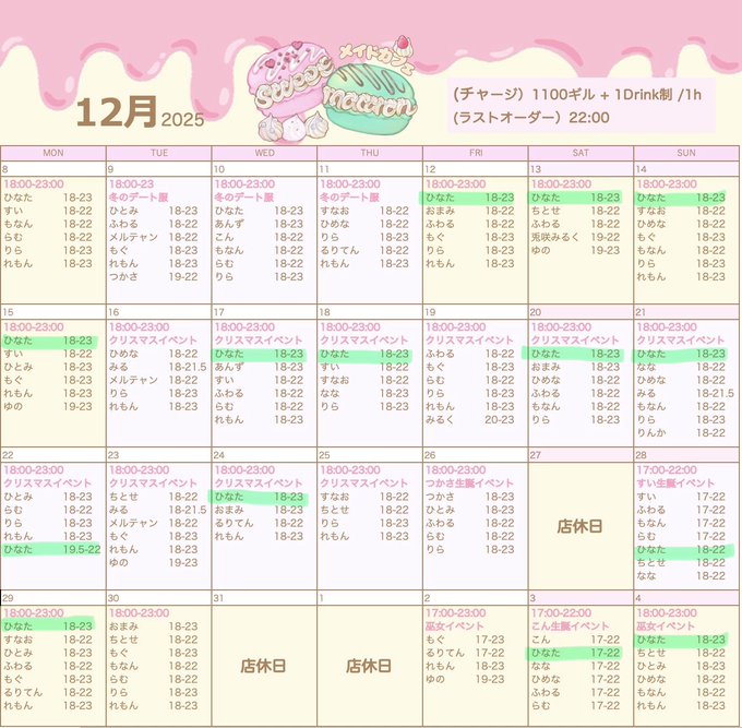 中野・吉祥寺 樂園(パライソ)樂園-パライソ-高円寺平成コンカフェさんがリポストうみびあ🍻🍻🍻@umi_beer·8時間12月!!! 17日(水)20〜24 22日(月)19〜24 年内は! あとこの2日だけ🔥✨引用樂園-パライソ-高円寺平成コンカフェ@paraiso__koenji·12月13日12月 #樂園出勤キャスト一覧 です! 20〜26日はクリスマスウィークです🎄🎅 31日は年越しカウントダウンもあります‼️ 年末年始も休まず営業するので皆さんのご来店お待ちしております🌟311451