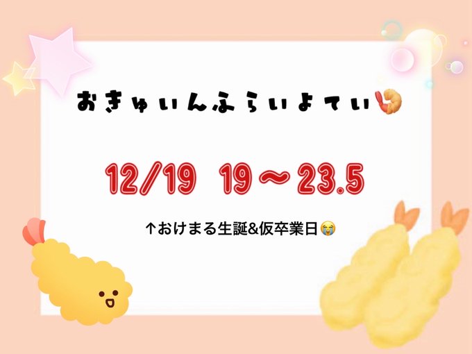 固定えびふらい@ebifurai_kmmm·今週のおきゅいんふらい予定🍤❣️ 私の親友のおけまるの生誕&仮卒業です😭 お祝いの気持ちと悲しい気持ちが混在してます😭 みなさまきてください🥹‼️338