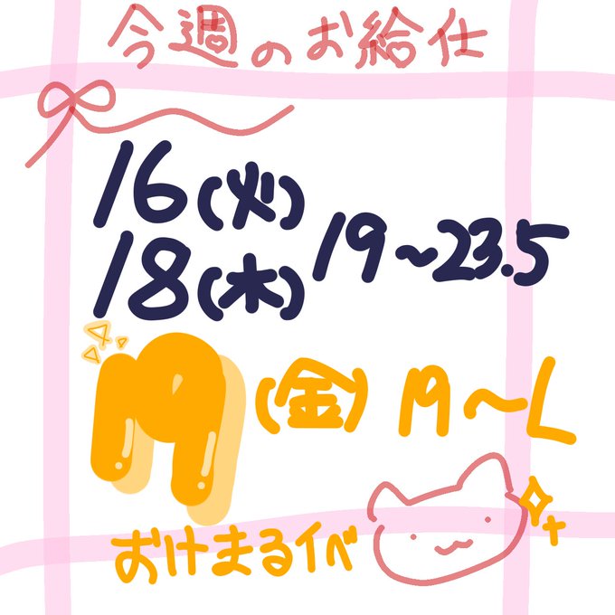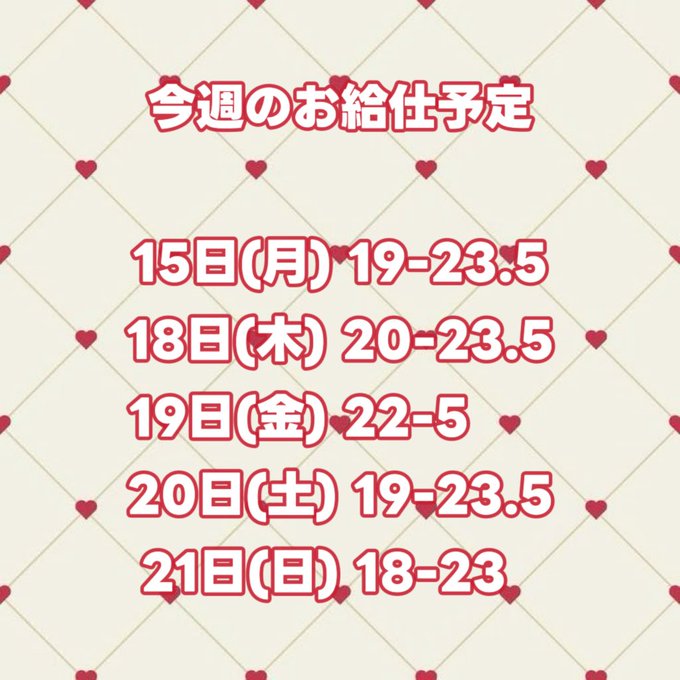 固定みく@3939_kmmm·❤️🔥🐾今週のお給仕予定🐾❤️🔥 19日はおけまるちゃん生誕&卒業イベントです🎂🌸 私は深夜にいます!!お祝いと感謝の気持ちを込めておけまるちゃんを支えさせて頂きます👍🏻♡ 21日はソライロぐみ合同営業です☁️🪽 私はソライロぐみさんの衣装を着させて頂こうと思ってるので是非見に来てください🩵1185