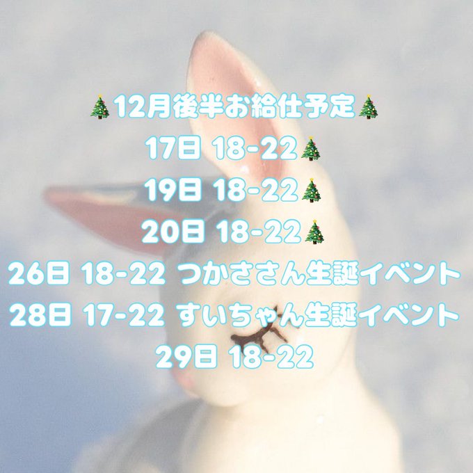 固定ねむ🐇@kmmm_nemu·今週のお給仕予定🐇☽・:* 金曜日はおけまるちゃんの卒業イベ!! ねむは忘年会があってお給仕はできないけど夜顔出せたらいいな~と思ってます💭ྀི9126