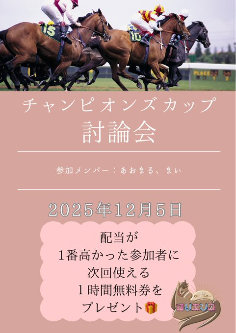 競馬カフェ&バー🐴オリエンス💛 JR錦糸町駅南口から徒歩6分🐴✨@keiba_oriens·✨🐴チャンピオンズカップ🐴✨ オリエンスで討論会しませんか?😳✨ 日程:12月5日(金) 1番配当が高かった参加者には 1時間無料券 をプレゼント🎁✨ お待ちしています🎶 #競馬 #競馬予想 #競馬バー #競馬コンカフェ5267