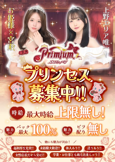 上野・御徒町・湯島・浅草 ぷりみゅーむ🎀Primium(ぷりみゅーむ)🎀上野コンカフェ@Primium_cafe·🌹舞踏会を目指すお姫様×宮殿コンセプトカフェ🌹 上野コンカフェ Primium(ぷりみゅーむ) 新人キャスト大募集🌹 可愛い子しかいないPrimiumで可愛く楽しく稼いじゃいませんか♥️ ご応募はこちらから➡️http://lin.ee/f0m24DR #コンカフェ募集 #コンカフェ求人 #コンカフェキャスト募集さらに表示1186