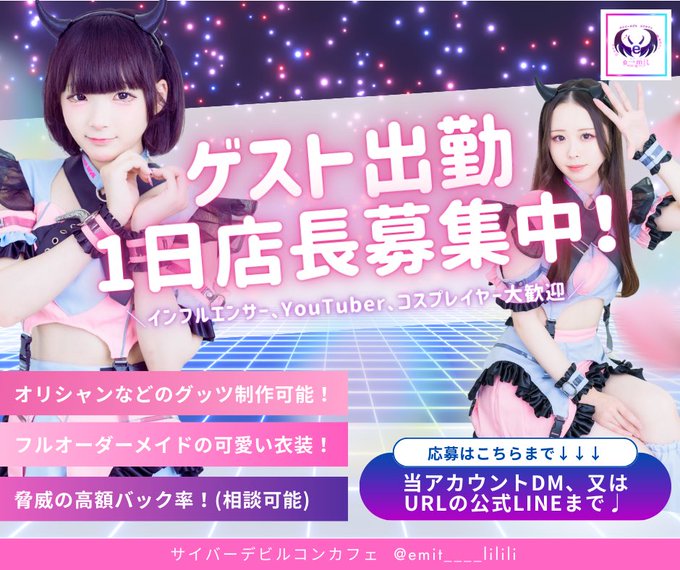 中野・吉祥寺 e→mit⟬吉祥寺コンカフェ⟭ - ̗̀𖤐 e→mit(えみっと)⚡️@emit____lilili·😈━━━━━━━━━━━━━━ ゲスト出勤・1日店長大募集中! ━━━━━━━━━━━━━━━⚡️ ✨あなたも電脳空間でキラキラサイバーデビルちゃんになりませんか?✨ 🩷🩷 応募はDM又はLINEまで!↓ http://line.me/ti/p/3CxI-SYZBT 🩷🩷 #コンカフェ営業 #コンカフェ求人130