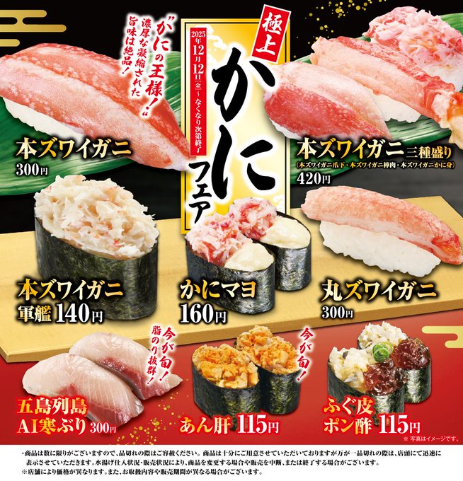 西東京 みけねこcafe清瀬本店白鬼院弥生@みけねこカフェ清瀬さんがリポスト正方形のプロフィール画像無添くら寿司【公式】@mutenkurasushi·/ ❄️明日から!冬のごちそう 🦀『極上かにフェア』開催! \ かにの王様✨濃厚な旨み『本ズワイガニ』『本ズワイガニ三種盛り』や、本ズワイガニのかに身を贅沢に使用した超お得‼️な商品『本ズワイガニ軍艦』など、旬の味覚カニを存分ご堪能いただけるフェアです👍 詳細🔻 https://kurasushi.co.jp/topic/007007.html…133038255.4万