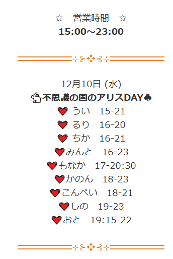 Cafe & Bar けもみみ@新橋コンカフェ | エンジニア無料@0_kmmm_0·🐾本日の出勤🐺 12月10日(水)19時オープン おけまる 19~23 (@okemaru_kmmm ) らむ 19~23 (@kmmm_ramu ) りな 19~23 (@rina_kmmm ) ねむ 19~23 (@kmmm_nemu ) 本日もご来店お待ちしております🎶12358