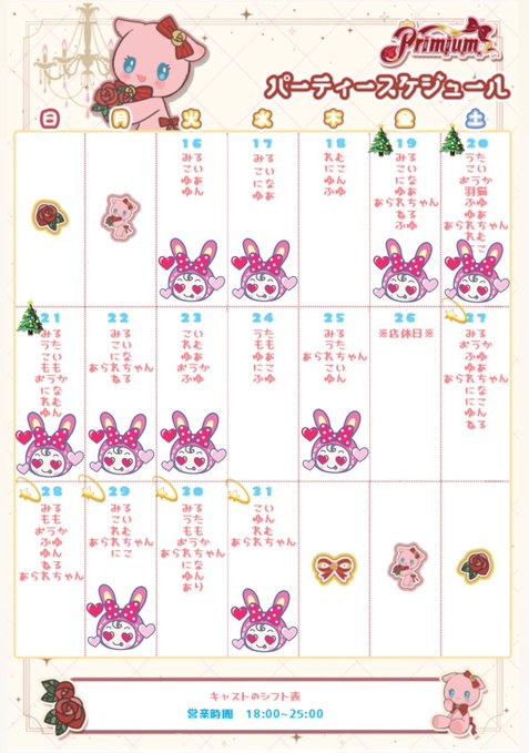 上野・御徒町・湯島・浅草 ぷりみゅーむこい@primium_koi·🗓12月後半🫶🏻🎅🏻🎀 16、17、22、23、25 19、20、21 クリスマスイベント🎄 29、31 年末スペシャル💫 💕全て18-23です!(25日のみ19:30-23) 💕実は12/27はこいの2️⃣1️⃣歳リアバ🎂でもあるので、2♡25年ラスト会いに来てくれたら嬉しいです🎉💘お待ちしてます(՞_ ̫ _՞)♡4112