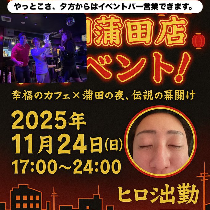 その他東京 ゆめまつり伊織です@ゆめまつり🏮@yumematu_iori·11月23日1730〜( o̴̶̷̤ ̫ o̴̶̷̤ )ᐢ引用【コンカフェ】ゆめまつり/西葛西@_yumematuri_·11月23日本日の営業時間は17時〜23時30分となります。 ⛩️今日のキャスト⛩️ さやか @yumematu_sayaka 伊織 @yumematu_iori りり @yumematu_riri 本日の曜日ごとイベントは 【キャストに応援ドリンク注文でチェキ無料です】です❗️ 皆さまのご来祭お待ちしております✨24672