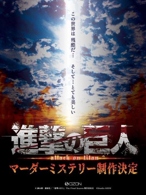 その他東京 てちゅ☆てちゅ天使ゆる@てちゅ☆てちゅ👼🪽さんがリポストStudio OZON@特設04 マダミスブース@ozon_jp·\\ \ / // 情報解禁 // / \ \\ この世界は 残酷だ… そして…とても美しい #進撃の巨人 #マーダーミステリー 制作決定‼️ #shingeki #StudioOZON1391.1万5.2万512万