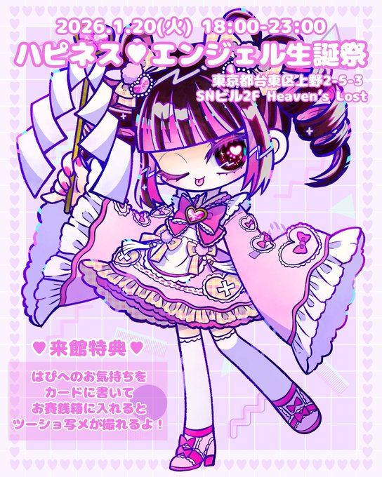 上野・御徒町・湯島・浅草 Heaven's Lost兎闇なな@7Uyami·11月20日かわいい!!՞˶・֊・˶՞引用命♡はぴちゃん💮1/20生誕祭🎂@Heavens_Hapi00·11月20日【2026/1/20(火)18:00~】 #ハピネスエンジェル生誕祭2026 を開催させて頂きます!🎂 今年のコンセプトは💮ハピネス♥神社⛩ 神社モチーフの衣装や特典、フォトスポットも準備予定です♡ 詳細は画像&このツイートのツリーをチェック🪬 信者もオタクもノーマルお人間様も参拝お待ちしております💖13157