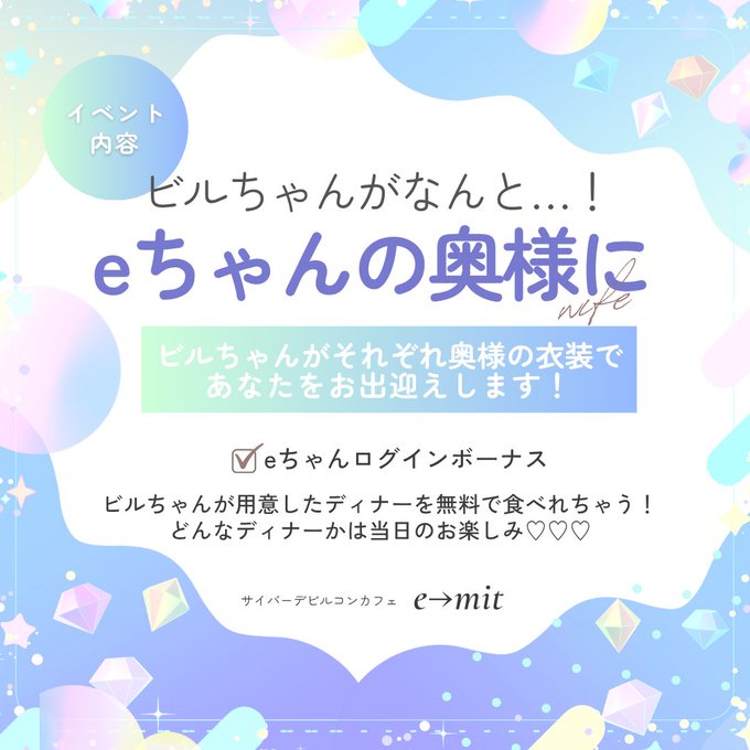 中野・吉祥寺 e→mit夜見(よみ)🌙e→mitさんがリポスト⟬吉祥寺コンカフェ⟭ - ̗̀𖤐 e→mit(えみっと)⚡️@emit____lilili·🎈👫いい夫婦の日イベント👫🎈 期間:11月22日(土)・23日(日)  ̄ ̄ ̄ ̄ ̄ ̄ ̄ ̄ ̄ ̄ ̄ ̄ ̄ ̄ ̄ 🪄ログインeちゃんサービス ビルちゃんが用意したディナーを無料で食べれちゃう!!!!👨🏻🍳🍽 推し(奥様)の姿をぜひ目に焼き付けてね✨36714