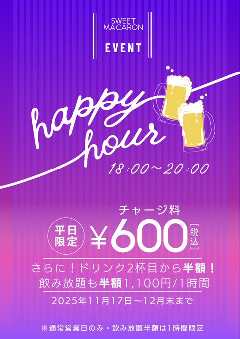 上野・御徒町・湯島・浅草 メイドカフェsweet macaronゆの@unknown_yunono·12月前半お給仕予定🎄 3日 19時-LAST 13日 19時-LAST 15日 19時-LAST 体調により変更ありましたらポストします🙇♂️2025年もあとわずか!マカロンで楽しく過ごしましょう🍻✨ 18時-20時までお得なキャンペーンもやってます!!ご帰宅おすすめです!!!詳細は画像⬇️メイドカフェsweet macaron(スイートマカロン)🍬上野・御徒町242