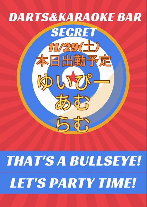 中野・吉祥寺 AngelDreamあむさんがリポストダーツ&カラオケバー「シークレット」@ojikibar_secret·11/29(土)オープン✨✨ 11月ラスト営業日です‼️ ゆいぴー(@gekiatu333333 ) あむ(@aienka_amuu ) らむ(@ramu33c ) 皆様のご来店楽しみにお待ちしております♪ #バー #ダーツ #カラオケ #ボードゲーム #飲み放題 #テキーラ #東陽町 #江東区 #朝まで営業272