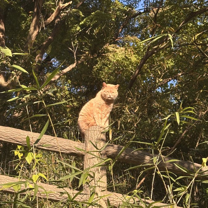 えびふらい@ebifurai_kmmm·鳴き声聞こえて上見たらネコさんに見下ろされてた、カワエエ、、😸 仲間だと思ったのかな?🐺?1360