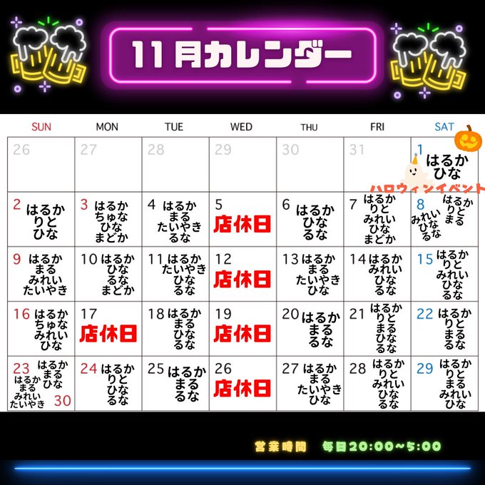 中野・吉祥寺 海の家コンセプト アルテミス固定💛💙高円寺 アルテミス💙💛@Artemis_kouenji·"高円寺アルテミス" 🏝11月出勤カレンダー最新版🆙🏝️ ご来店お待ちしてます🎶 キャスト募集中▶︎http://lin.ee/es8ssdE #コンスナ #コンセプトスナック #コンカフェ #高円寺 #アルテミスカレンダー487