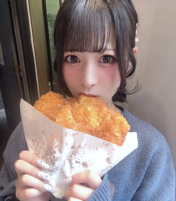 上野・御徒町・湯島・浅草 可茶菓茶‐ぷりてぃぱーてぃ‐水鈴遥(すいりん はるか)🍣@suirin0u0haruka·This is just regular chicken, but my face is so small it looks like a huge chicken.1425748