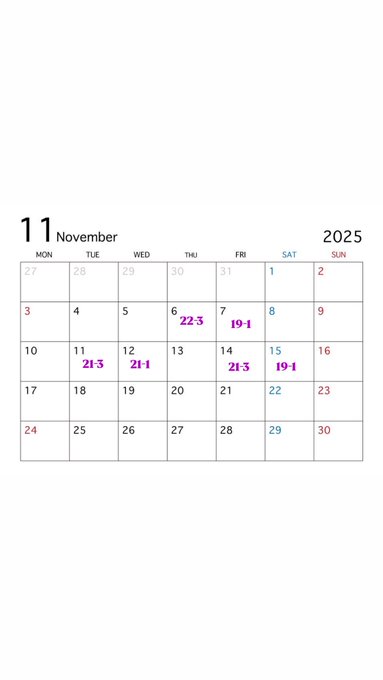 上野・御徒町・湯島・浅草 メイドカフェsweet macaronゆの@unknown_yunono·11月後半おきゅ予定!🗓 パジャマイベントあります!!高校のジャージをずっと着てるのでさすがになんかいい感じの買いますので見に来てね〜👀♫ 寒くなってきたので体崩さないように気をつけましょうね💪 2025年も残り少ないですがよろしくお願いします✨メイドカフェsweet macaron(スイートマカロン)🍬上野・御徒町1371