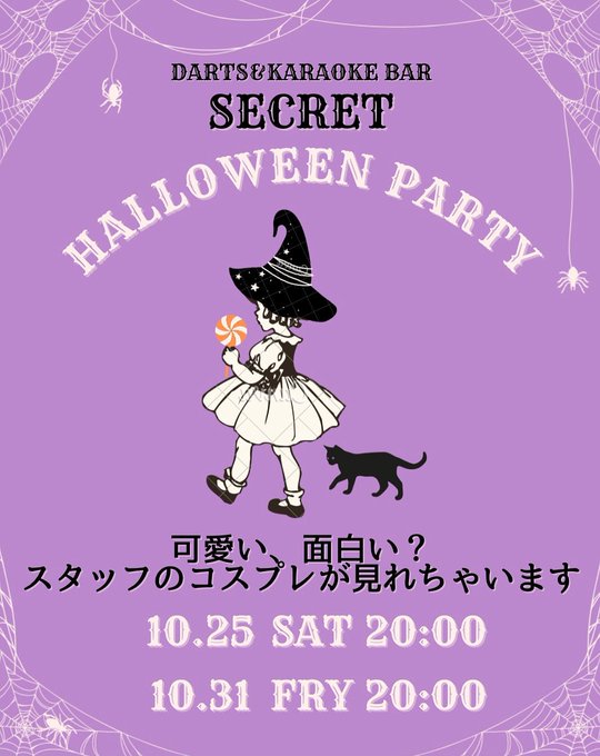 その他東京 ダーツ&カラオケバー シークレットダーツ&カラオケバー「シークレット」@bisquedoll_bar·10/31(金)出勤予定 本日はハロウィンイベント👻 スタッフみんな仮装でお出迎え❣️ 11月の三連休は日曜日営業しますのでこの機会にぜひご来店お待ちしてます🙇 #バー #ダーツ #カラオケ #テキーラ #ハロウィン #三連休22212
