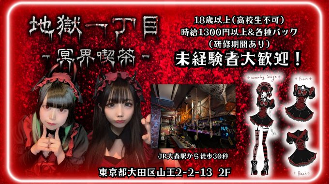 コンカフェ地獄一丁目【大森】@CafeJigoku·🔥地獄一丁目 キャスト募集🔥 一緒に働いてくれる鬼悪魔ちゃん募集中👹 品川駅から京浜東北線で5分、大森駅から徒歩30秒 応募はこちらから→http://lin.ee/ed1BZeo #コンカフェ #コンカフェ求人 #求人 #求人募集中 #品川 #大森13195