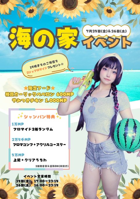 固定ぱぴぷぺポロン🛸新橋コンカフェ@polon_bar·🌺いよいよ今週末開催🌺 7月25日㈮&26日㈯ 海の家イベント🌊 使い魔は魅惑のショートパンツで召喚🥰💛 今回限定❕夏にピッタリ豪華シャンパン特典ご用意しました🥂🫧 当日はフードもあります🤩🙌🏻 19時までのご帰還でツーショブロマプレゼント✨ 使い魔ちゃんと夏を楽しんじゃおう☀️🍉🌻さらに表示34722