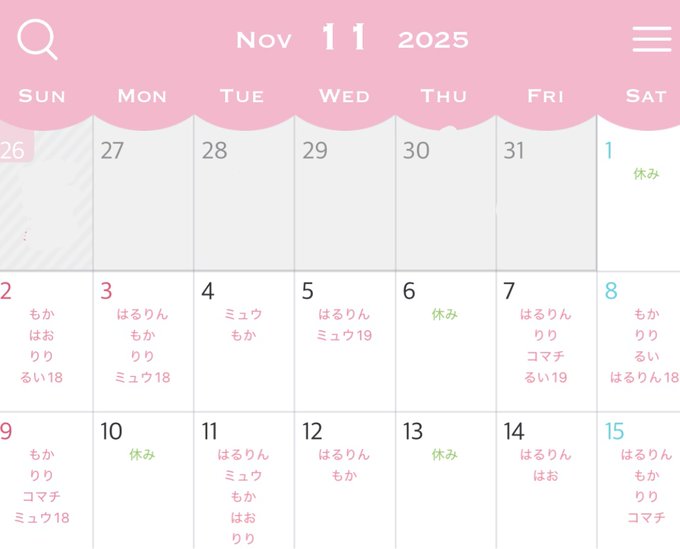 上野・御徒町・湯島・浅草 可茶菓茶‐ぷりてぃぱーてぃ‐りり@ririnya2_·♡11月前半シフト♡ 2,3,7,8,9,11,15 ぜんぶ17:00~22:00です💘275