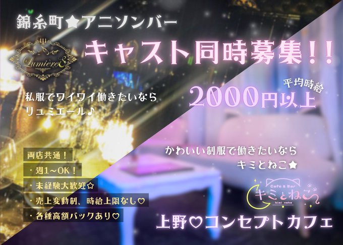 🌙キミとねこ🐈⬛上野湯島コンカフェ🐾@kimi_to_neko222·||◤ ◥|| キャスト大大大募集 ||◣ ◢|| 応募はこちら➡️http://lin.ee/MtoFxNP #秋葉原 #湯島 #コンカフェ求人23358