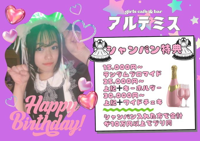 💛💙高円寺 アルテミス💙💛@Artemis_kouenji·7月18日🫧.: 💗・:* .🫧.: 💗・:* .🫧.: 💗・:* .🫧 ♡♡限定メニュー解禁♡♡ 来週7/25(金)20:00~Lはアルテミスに 集合‼️みれい生誕祭🎂🎉 @_301mirei_ みんなメイド服でお待ちしてます🥰 🫧.: 💗・:* .🫧.: 💗・:* .🫧.: 💗・:* .🫧引用💛💙高円寺 アルテミス💙💛@Artemis_kouenji·7月4日。:.゚ஐ⋆*♡・:*ೄ‧͙·*♪ஐ⋆*♡・:*ೄ‧͙·*♪ ⋆͛📢 お知らせ⠀ 7/25 ( 金 ) 20:00~5:00 みれい @_301mirei_ 生誕祭🎂 💜💜開催決定💜💜 皆様のお越しをお待ちしております🎓 。:.゚ஐ⋆*♡・:*ೄ‧͙·*♪ஐ⋆*♡・:*ೄ‧͙·*♪ #アルテミスイベント11403
