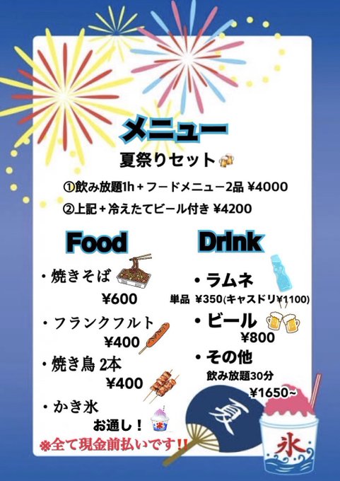さき@saki_actical·7月19日みんなー!今日だよー!ちょっとだけでもいいからみんなに会いたいよー( ; ; )💖引用さき@saki_actical·7月9日皆様皆様待望の夏祭りイベントやりまーす!!さきれんでやるよ💖フードメニューもあります!! 当日は浴衣着るのでみんな見に来てね👀 何とお通しでかき氷だします!シロップはイチゴ🍓とブルーハワイ💙からえらべるよ‼️(追加は¥400!) ※foodやラムネ等は売り切れたら終わりです!(ごめんね土曜だよ)27790