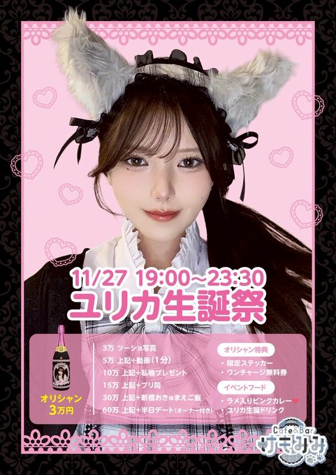 中野・吉祥寺 あるちゅーるあるちゅーる 吉祥寺コンセプトカフェ@Alture_·🎀12月のあるちゅーるは、夢とときめきがいっぱい🎄✨ 今年最後の魔法、受け取りにきてね💌 🧸12/5〜7:ねこちゃんとおやすみ💤パジャマイベント 🎁12/19〜21:彼シャツイベント(チェキ1枚無料!) 🎅12/24〜26:クリスマスイベント(入推し限定オードブルプレゼント🎁)さらに表示1413683