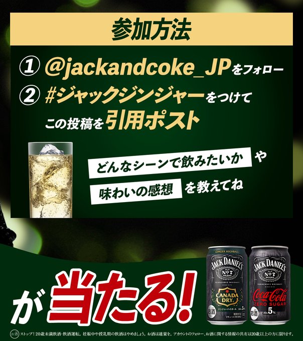 カズ兄さんがリポスト正方形のプロフィール画像ジャックコーク@jackandcoke_JP·\100名様に当たる!/ 本格派ジンジャーハイボールの ジャックジンジャーがついに誕生! ① @jackandcoke_JP をフォロー ② 「ジャックジンジャー」をつけてこの投稿を引用ポスト 飲みたいシーンや味わいの感想があれば、一緒にどうぞ💬 ご応募は10/12(日)まで1,3052万6,643265万