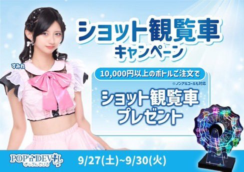 ひな🫵ぽぷでび@hina_ppdv·おきゅいんダゾ! 今日からショット観覧車キャンペーン🎡🎡 1万円以上のボトル開けてくれたらショット観覧車もプレゼント🎁 ラストまでだからぜひ来て✨‼️18154