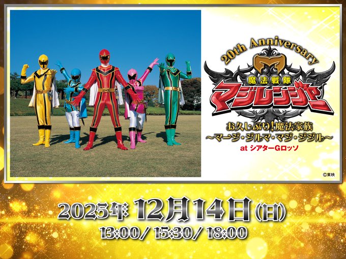 りく🔰さんがリポストシアターGロッソ【公式】@at_raku_grosso·/ 魔法戦隊マジレンジャー 20th Anniversary お久しぶり!魔法家族 ~マージ・ジルマ・マジ・ジジル~ at シアターGロッソ 開催決定📢 \ あふれる勇気を魔法にかえる🌟魔法家族がGロッソに登場✨さらに表示264,4466,53665万