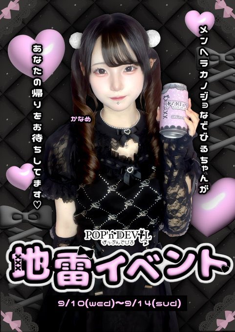 はぴ🐥ぽぷでび@hapi_ppdv·おきゅいん!!地雷イベです🖤 久しぶりだーー!!! ラストまでお願いしますっ! #ぽぷでび #八王子 #コンカフェ116249