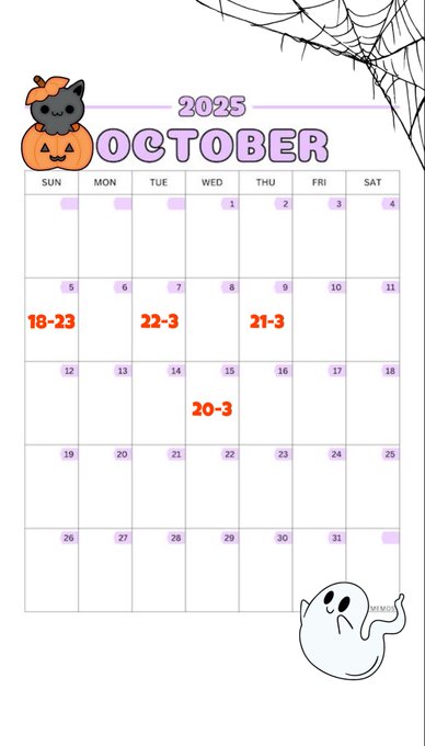固定りえ🌙ぽぷでび@10/25生誕@rie_ppdv·🌙10月前半予定🌙 7~11日はパジャマイベあるよ➿ン たくさんのサタン様のご帰宅お待ちしてます👍🏻 #ぽぷでび #ぽっぷんでびる #八王子コンカフェ256