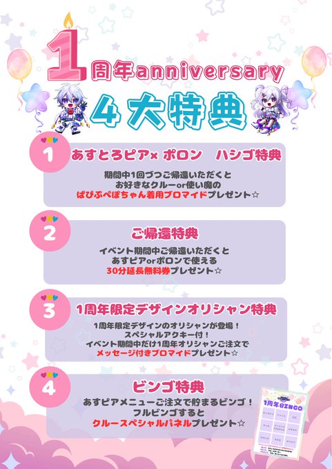 ななや🌈🦀7/11.12生誕ありがとう!さんがリポストあすとろピア🚀池袋コンカフェ@asupia_cafe·本日【(土)】乗船予定クルーは ななや、ウラ、名取、まっちゃ、サク、鷹春、ひよこ 今日からスペシャルな3日間💕あすピア1周年イベントがはじまるよ🎉 豪華特典盛りだくさん‼️限定オリシャンも見逃せないっ👀 ななや【@polon_nanaya 】がろぴあちゃんのコスプレで激レア乗船するよ❣️さらに表示110131,364