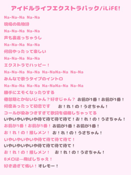 ねる👻💜@MELSWA_neru·7月20日エクストラきちゃ! 本日17時〜うさちゃん新曲お披露目〜〜🐰 新曲のみ撮影可能になってるのでいっぱい撮影しちゃってください📸✨ 振りコピしようね🕺🕺引用うさ🐰MeltySwamp@MELSWA_usa01·7月19日♡。.. アイドルライフエクストラパック/iLiFE! .⋆𝜗𝜚 ガチ恋可変三連たのしみ♡ 大好きなあいらいふちゃんなので全力で沢山移動します.ᐟ.ᐟ #うさぬコール隊5453