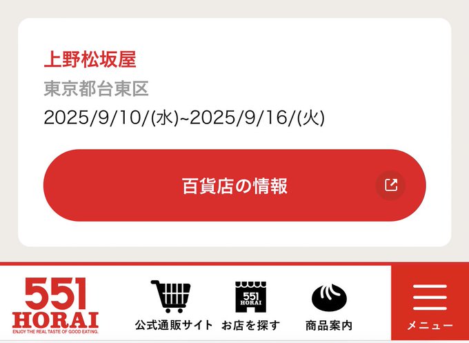 なの@nano_onikuS2·7月15日だれか持ってきて貰うことは可能ですか?引用くろもん@上野御徒町@uenokuromon·7月14日なんと❗️上野に‼️551蓬莱がやってきます🥳14552