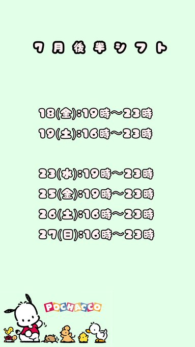 固定ここ@coco_spirytus·7月後半シフト🐾໊16328