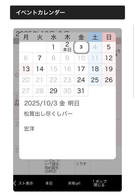 【蒲田】トラウマfeaturing SANDAIME Kamata【朝7時まで営業】さんがリポスト宏洋@10月も赤坂出勤強化🥃🔥@hiroshi2ndsub·4時間Bar三代目ログインしてます! 絶賛二日酔いですが飲みます!!!🤢🥃 ご来店お待ちしております!! @Bar3daime引用Bar三代目赤坂店@カラオケ導入!&深夜営業開始🎤🌙@Bar3daime·4時間松茸出し尽くしバー、オープンしております! 開店からお客様が来て下さって盛り上がっております☺️🍄🟫✨ 今日で松茸ラストです🔥 ご来店おております!🍻 @hiroshi2ndsub7132,396