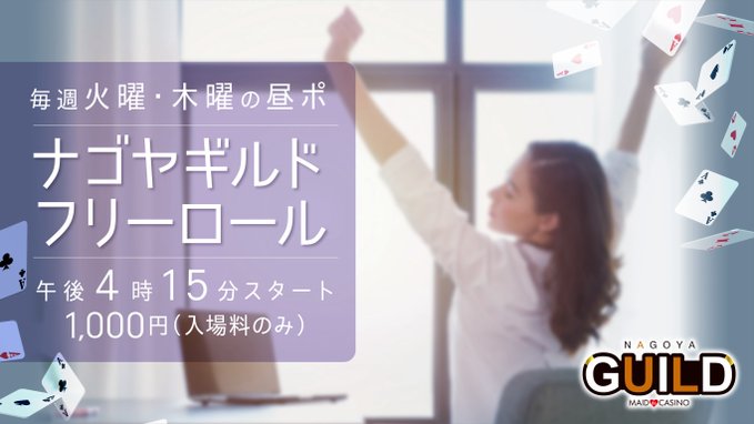 ナゴヤギルド 名古屋 ポーカー@AGNagoyaguild·本日16:15からは 🌈ナゴヤギルドフリーロール🌈 優勝者に5,000コイン🤩 上位3名は夜トナメアドオン無料❤️ とってもお得にトーナメントに出れちゃいます✨ 🍒詳細🍒 参加費 1000円(ナゴギロトのご利用NG) リエントリー 1,000円 レイトレジスト 18:25 #ポーカー #トーナメント #名古屋 #名駅1350