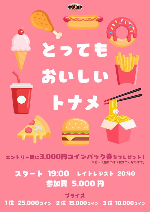 ナゴヤギルド 名古屋 ポーカー@AGNagoyaguild·本日19:00からは 😋とってもおいしいトナメ😋 エントリー時に3000コインバック券プレゼント🎶 ⚠︎ロト割引・昼ぽの割引のみ特典がもらえます! 上位3名の方はコインGET🎶 🍽️詳細🍽️ レイトレジスト 20:40 参加費 5,000円 リエントリー 5,000円 #ポーカー #トーナメント #名古屋 #名駅311