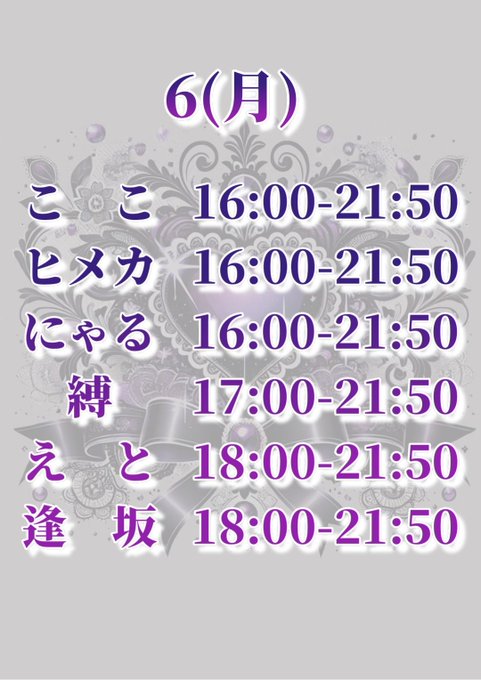 まいんずるーむ【公式】地雷系コンカフェ🍾キャスト募集中@mines_room·7時間オープンしました🎀 本日もよろしくお願いします🌷 修正 ヒメカ→休み にゃる→18:00-21:50引用まいんずるーむ【公式】地雷系コンカフェ🍾キャスト募集中@mines_room·10月5日本日もまいんずるーむにご来店頂きありがとうございました🌷 明日のまいんずるーむです🎀16586