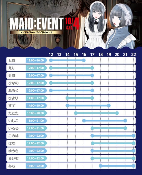 メイギルドエレジア名古屋栄店@eresia_sakae·【 10/4(土)ギルドメンバー 】 次元の歪みより現れるのは—— 18:00〜21:30 なゆた🔰@Nayuta_eresia 18:00〜23:00 える🗒️@ael_eresia るか🇰🇭@Ruka_eresia さくら🌸@omaeno_01 そあ🔰@soa_eresia 新しい仲間も大募集中! 異世界で一緒に冒険したい方はDMください⚔️ #コンカフェ2243