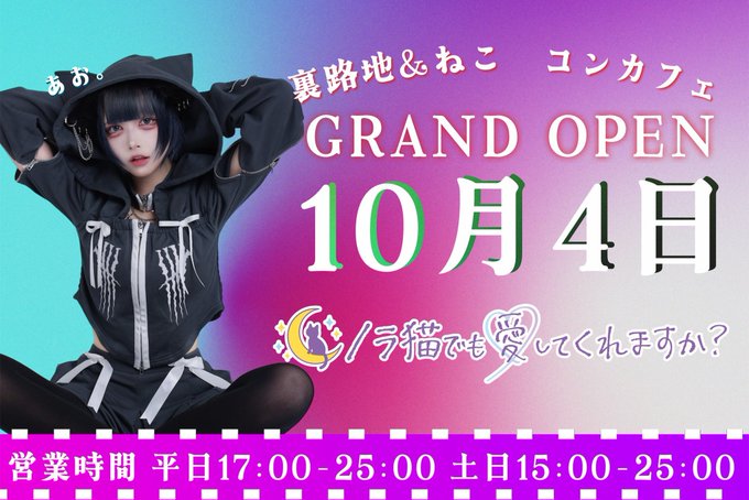 ゲン@ねこらぶ@gen_nekolove·遂に明日 10/4 ねこらぶグランドオープン✨ ゲンは18-1でお給仕してます^_^ 初めましてのおニンゲンさまに沢山会えるのを楽しみにしている~❣️ #コンカフェ #名古屋コンカフェ #ねこらぶ #コンカフェ嬢4108