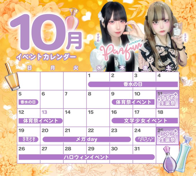 固定ミナミ🍒ྀི1025@PARFUN@minami_parfun·10月前半❕ ✧• ─────────── •✧ イベントも沢山あるのでDMもリクエストもお待ちしてます〜♡︎ᵎᵎᵎ #大須コンカフェ3163