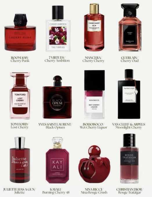 基次郎さんがリポストドギー本澤@doggyhonzawa1·【最新版チェリー系フレグランス】 今やチェリー系香水はものすごい数が出てる。ポイントは単にシングルチェリー香でなく「チェリーに何を取り合わせるか」。それが一流調香師の腕の見せ所。流石、デルフィーヌ女史のチェリー×ウードの組み合わせは絶妙ラグジュアリー。高級チェリー香水セレクション。22331,5764万
