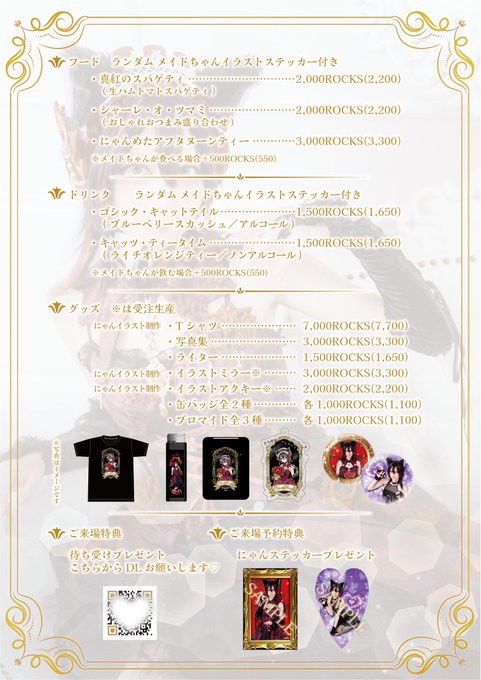 にゃんめたる🎸0927生誕祭@MAIDROCKCAFE@nyanmetal_mrc·6時間生誕祭グッズもまだたくさんご用意あります! Tシャツ・写真集お迎えして欲しい><引用にゃんめたる🎸0927生誕祭@MAIDROCKCAFE@nyanmetal_mrc·9月27日✦⋆.✦⋆. にゃんめたる生誕祭 メニュー⋆.✦⋆.✦ 本日にゃん生誕祭です🐈⬛🌹 こだわりいっぱいのメニューになってます❤︎ みんなで一緒に楽しもうにゃん✨8739