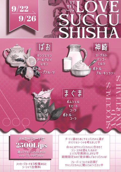 サキュバス シーシャBAR TAILS名古屋店💜@Succubus_Tails·#SuccubusTails 魔界の扉𝗼𝗽𝗲𝗻︎︎しました💭 今日のサキュバス😈 ♡螢 ♡ぬま ♡神崎 18- ♡ぱお ♡なゆ ♡まぐま ♡キノ🔰 魔力次第- ♡シキ デーモン😈こうき、堀内、しゅり 本日のおすすめシーシャ💭 ❤️🔥ラブサキュ 本日もご堕落お待ちしております︎💕︎0:5813186