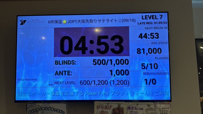 みわ@セカなつ@komusume__jp·9月18日高オッズになってます!! 皆様セカナツ集合です!!引用SECOND NUTS♧セカンドナッツ♤ポーカー♡名古屋 栄@SecondNutsPoker·9月18日6枠保証🌟JOPT大阪先取りサテライト♧ 現在5名様で進行中です🔥 👤 5/10 Ave. 81,000 blind 500/1000 レイトレジスト21:30まで1時間きってます‼️⏰ たいへん高オッズになっております😳 リング2-5 1卓7名様で進行中です‼️ たくさんのご来店お待ちしております❣️このポストには新しいバージョンがあります127