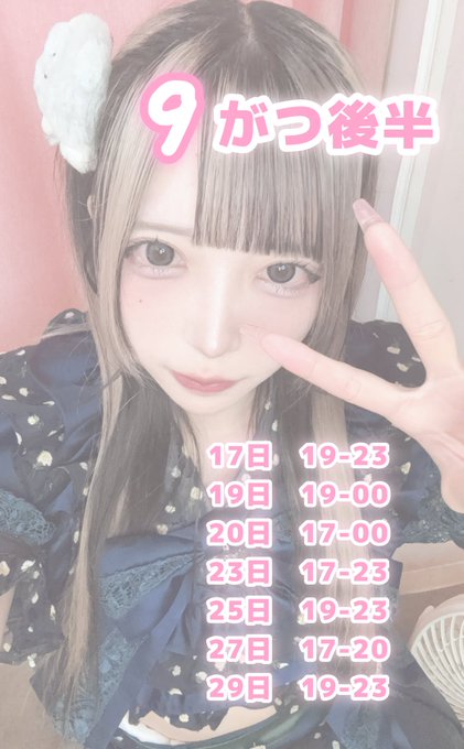 固定あめの@PARFUN@ameno_parfun·♡9月おきゅ予定♡ 遅くなりましたがおきゅ予定ですꔛꔛ( ᴖ , ᴖ )9月後半は少ないのでたくさんあえるのまってます😿😿😿 #名古屋コンカフェ #大須コンカフェ #コンカフェ #コンカフェ営業 #地雷系女子 #地雷系 #自撮り界隈117109