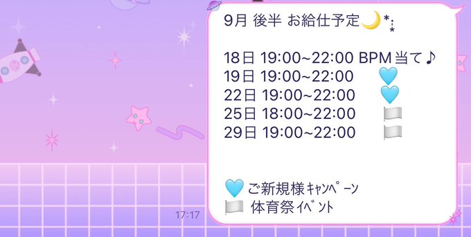 固定園祇🧬@ビジュラム名古屋@bjlmngy_sonogi·9月後半 20(土) 18:00-23:00 22(月) 18:00-23:00 23(火) 18:00-23:00 29(月) 18:00-23:00 20日よりさん卒業です、来てください。384